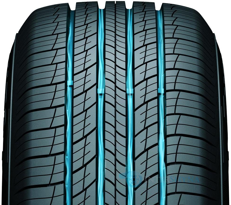 - Устойчивость к аквапланированию: Специальные канавки в протекторе эффективно отводят воду, снижая риск аквапланирования.